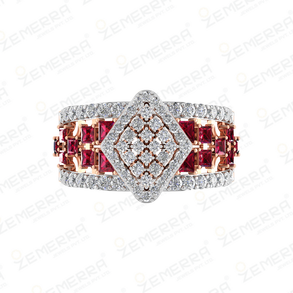 Trendy 14K Rose Gold Diamond Ruby Princess Cut Ring – HM Sarafa Bazar India Pvt Ltd