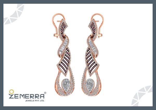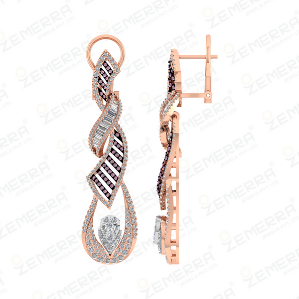 Unique 14K Rose Gold Diamond Dangle Earrings – HM Sarafa Bazar India Pvt Ltd