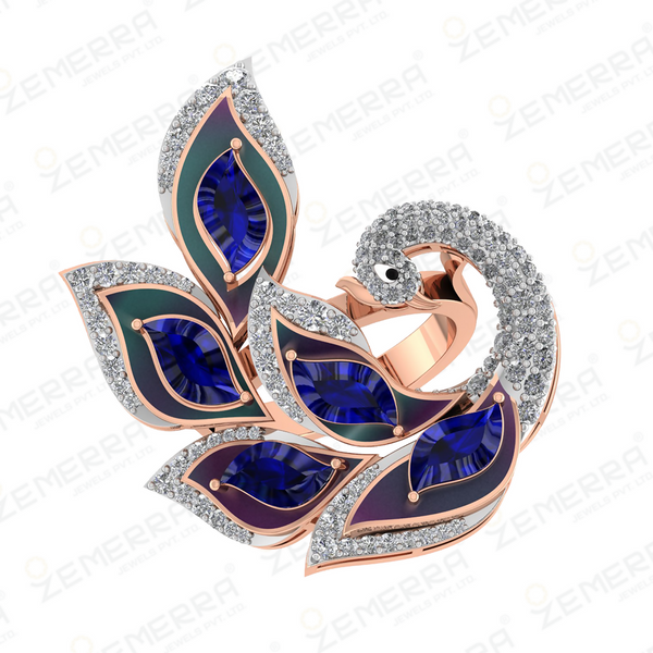 Unique 14K Rose Gold Diamond Ring - Peacock Design – HM Sarafa Bazar India Pvt Ltd