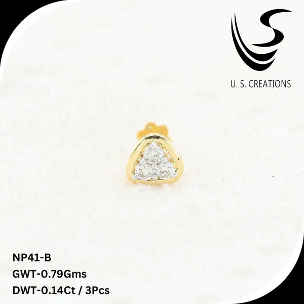 Elevate your elegance with this exquisite gold nose pin featuring a brilliant cluster of 3 natural diamonds. this intricately designed piece offers a secure screw-back closure for ultimate comfort and durability. A perfect blend of tradition and modern sophistication.