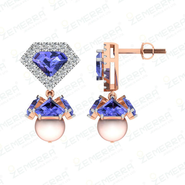14K Gold Purple Stone Diamond Drop Earrings for Women – HM Sarafa Bazar India Pvt Ltd
