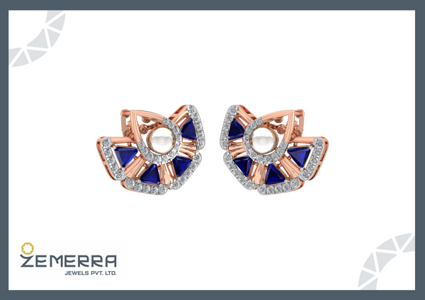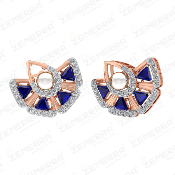14K Rose Gold Diamond Fan Shape Stud Earrings – HM Sarafa Bazar India Pvt Ltd