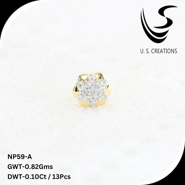 Elevate your elegance with this exquisite gold nose pin featuring a brilliant cluster of 13 natural diamonds. this intricately designed piece offers a secure screw-back closure for ultimate comfort and durability. A perfect blend of tradition and modern sophistication.