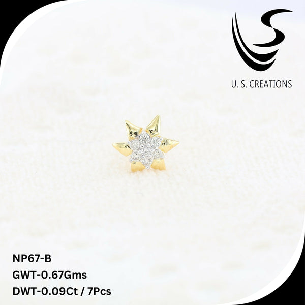 Elevate your elegance with this exquisite gold nose pin featuring a brilliant cluster of 7 natural diamonds. this intricately designed piece offers a secure screw-back closure for ultimate comfort and durability. A perfect blend of tradition and modern sophistication.