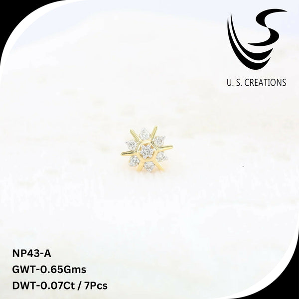 Floral Gold & Diamond Nose Pin -NP-43-A – HM Sarafa Bazar India Pvt Ltd