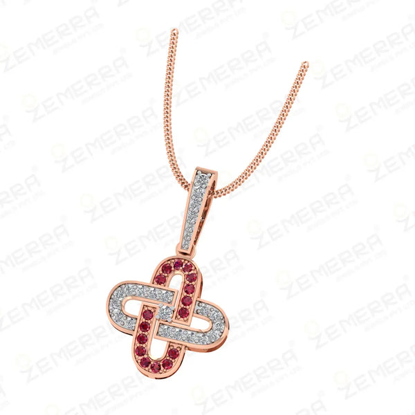 14K Gold Diamond Clover Shape Diamond Ruby Pendant Set – HM Sarafa Bazar India Pvt Ltd