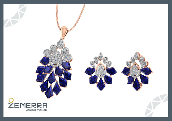 Stunning 14K rose gold pendant set with blue kite stone and diamonds, designed for women who love elegance and luxury.