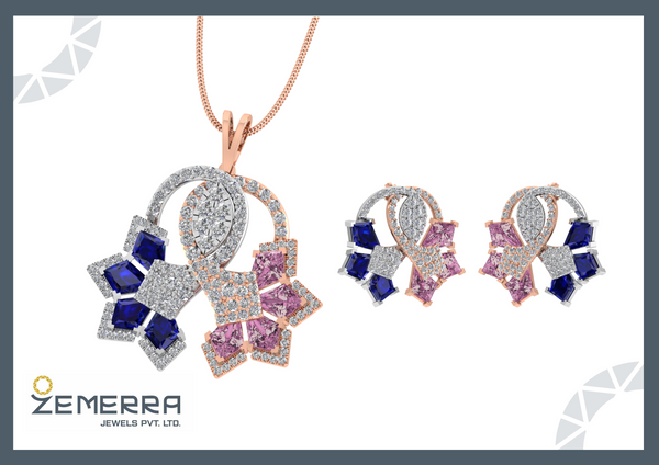 14K Rose Gold Diamond Pendant Set With Two Color Stone – HM Sarafa Bazar India Pvt Ltd