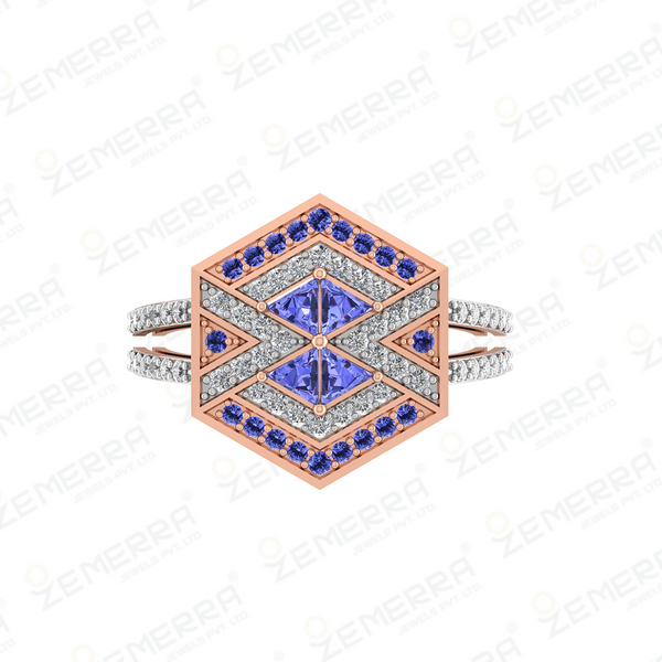 Elegant 14K Gold Tanzanite Diamond Hexagon Bridal Ring – HM Sarafa Bazar India Pvt Ltd