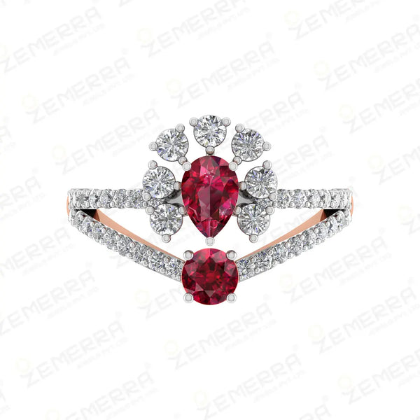 Lavish 14K Rose Gold Diamond Red Ruby Ring – HM Sarafa Bazar India Pvt Ltd
