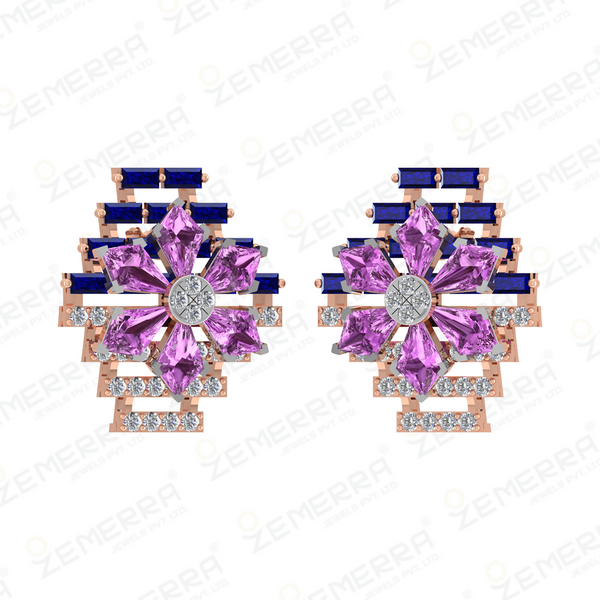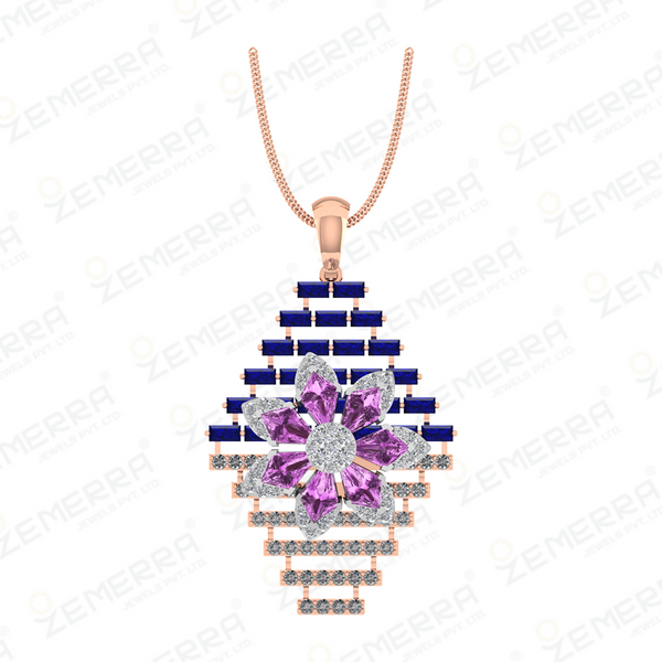 Stylish 14K Gold Diamond Floral geometric pendant Set – HM Sarafa Bazar India Pvt Ltd
