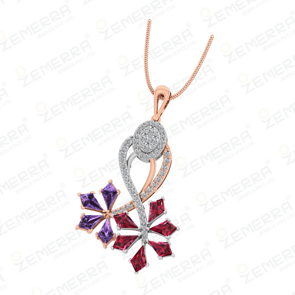 Abstract Leaf Diamond Pendant With Two Rhodium in 14KT Gold – HM Sarafa Bazar India Pvt Ltd