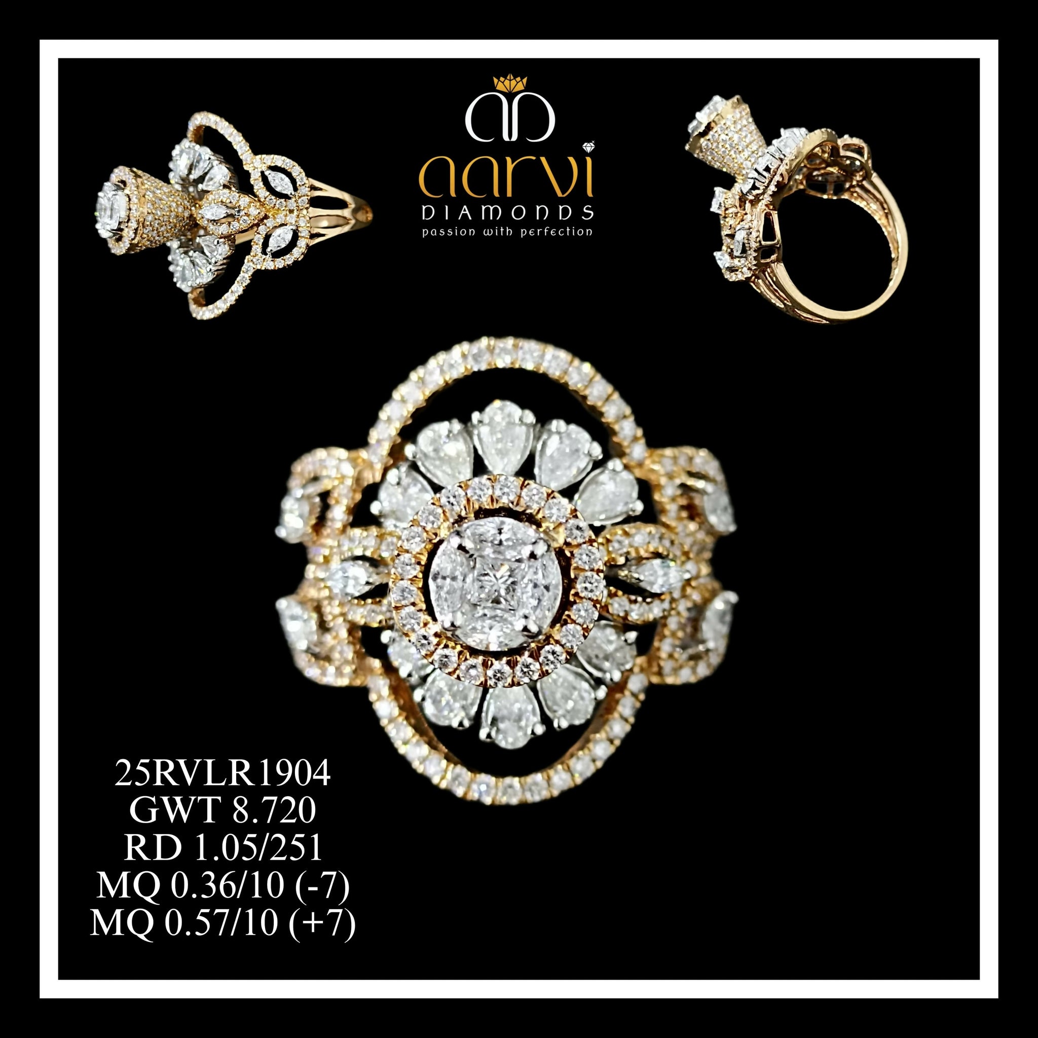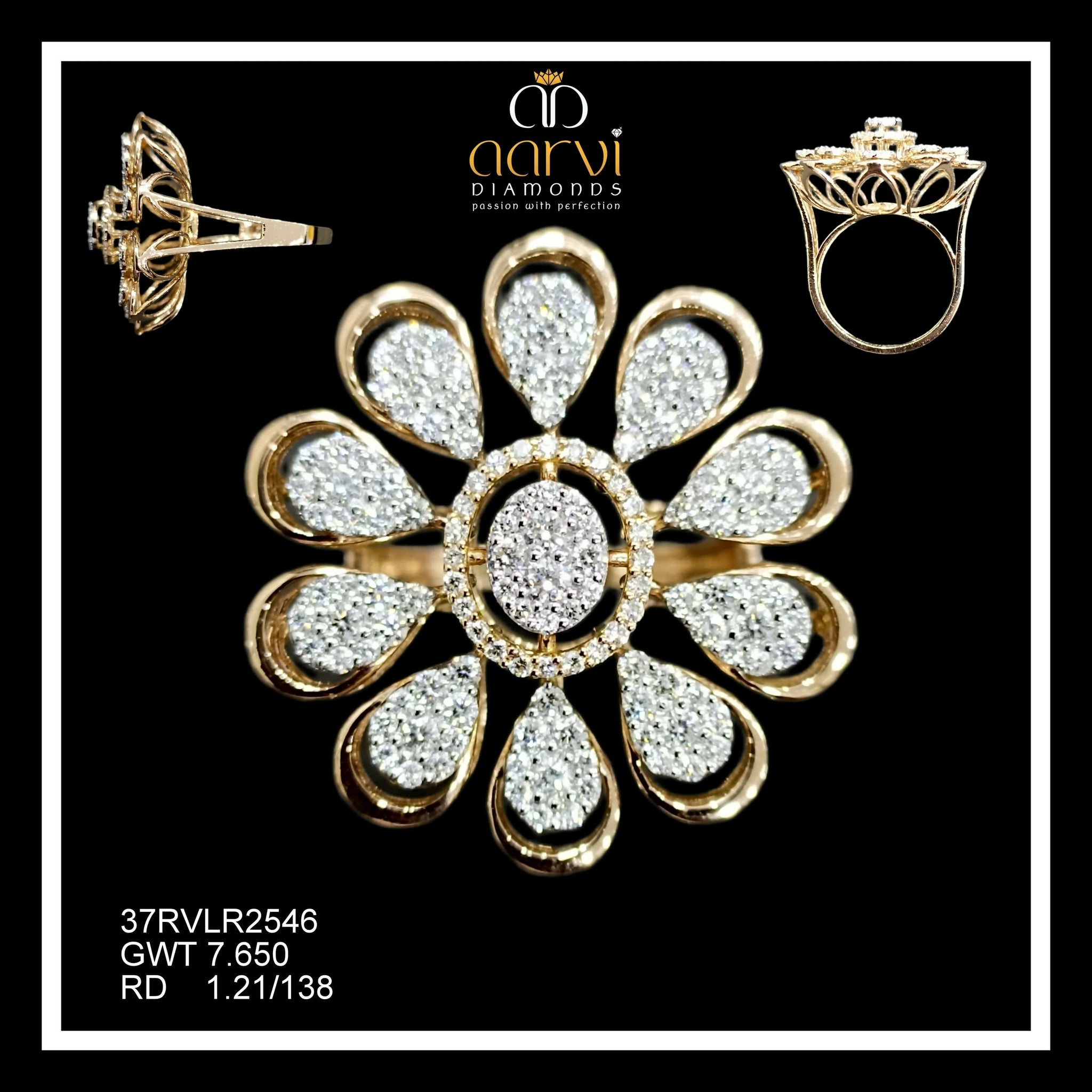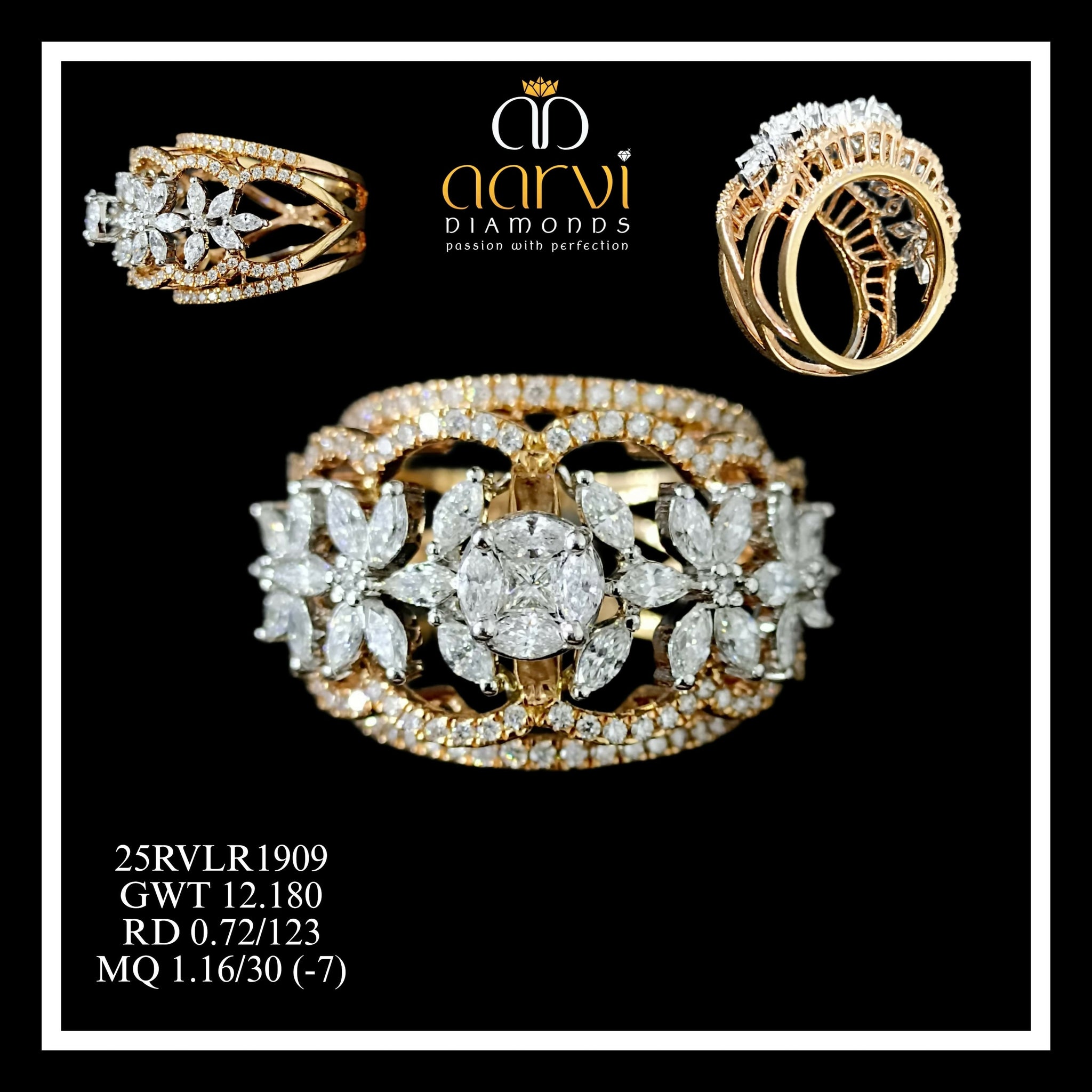 Modern 14K rose gold diamond floral ring crafted by jewelry manufacturer India, designed for stylish and premium fine jewelry lovers.