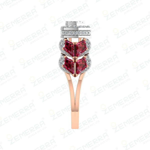 14K Gold Diamond Halo Rings With Red Stone – HM Sarafa Bazar India Pvt Ltd