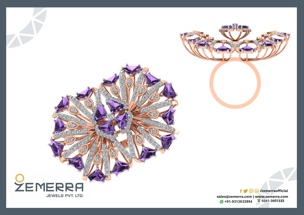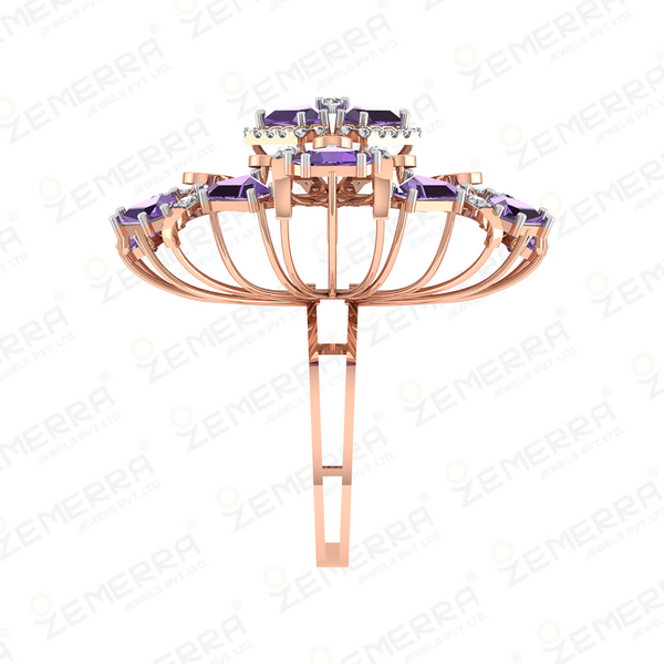 Lavish 14K rose gold diamond floral cocktail ring, crafted by a premium jewelry manufacturer India.