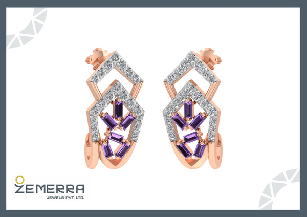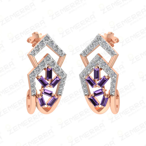 Elegant 14K gold diamond bali with amethyst baguette stone by jewelry manufacturer India, crafted for premium fine jewelry style.