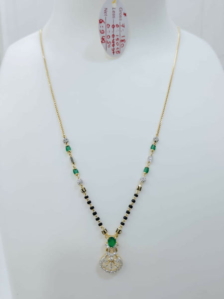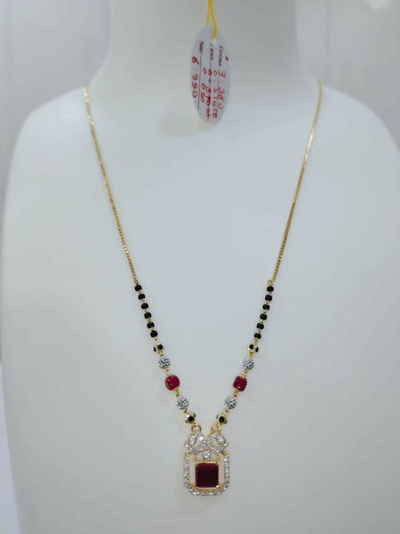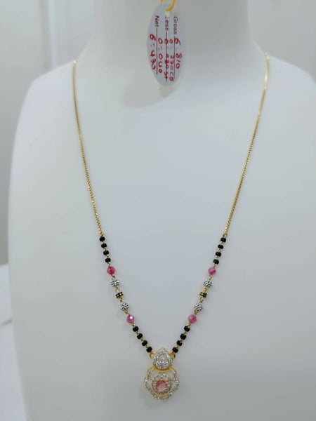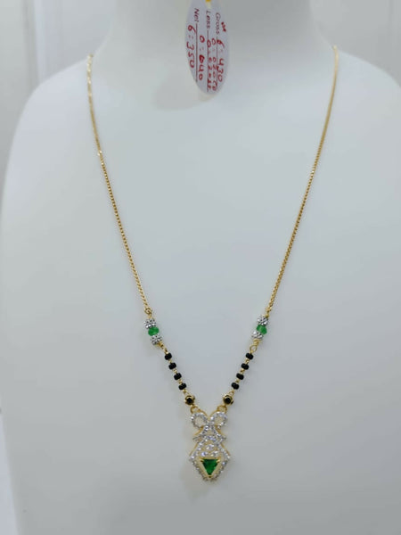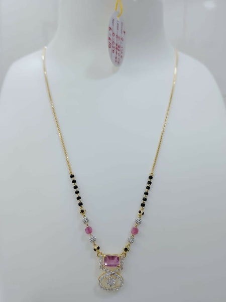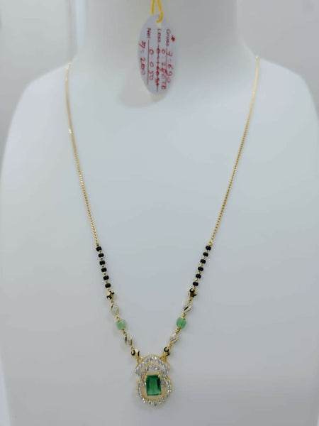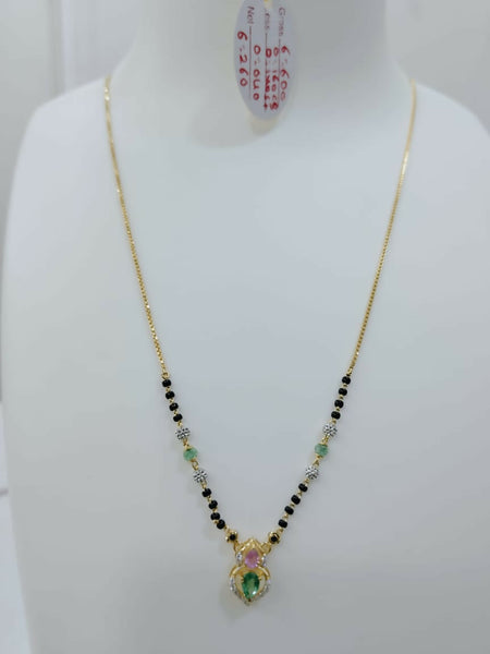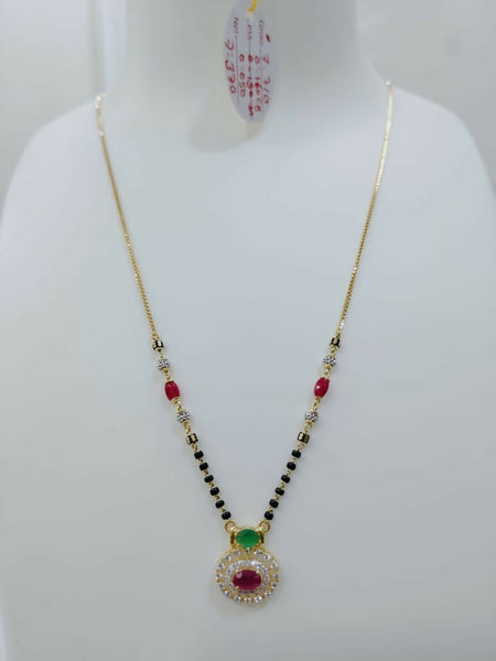 Coloured stone, cz pendent Short mangalsutra