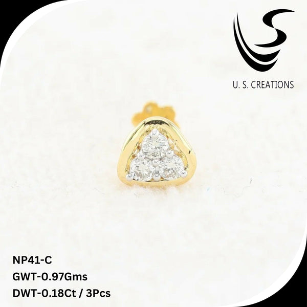 Elevate your elegance with this exquisite gold nose pin featuring a brilliant cluster of 3 natural diamonds. this intricately designed piece offers a secure screw-back closure for ultimate comfort and durability. A perfect blend of tradition and modern sophistication.