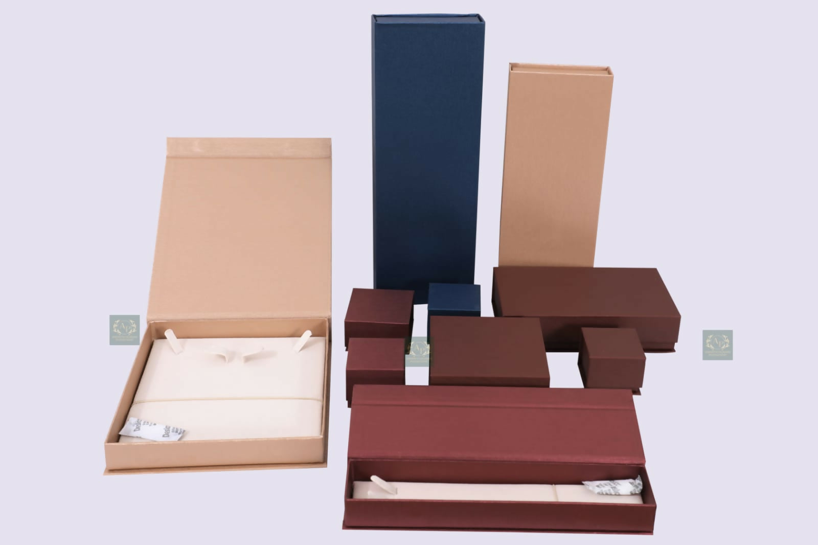 Suede Material Box series available in all sizes and multiple colours with fiber piece logo.