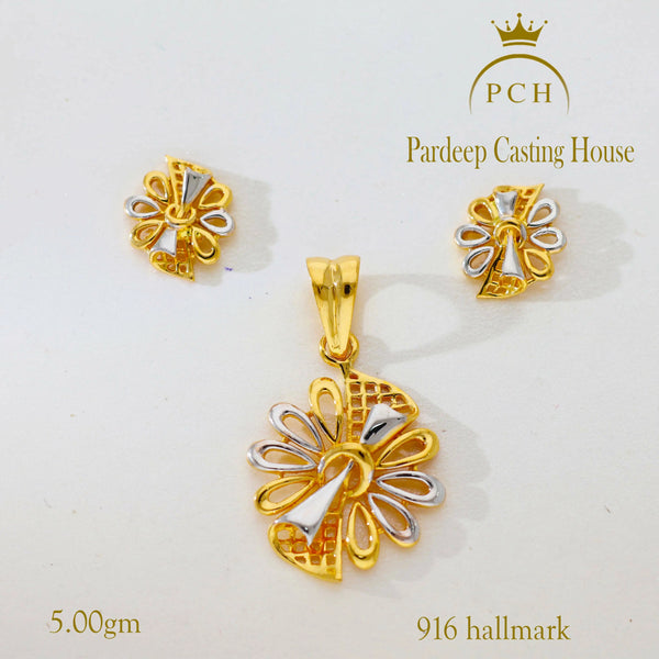 Gold Flower Pendant Set – HM Sarafa Bazar India Pvt Ltd