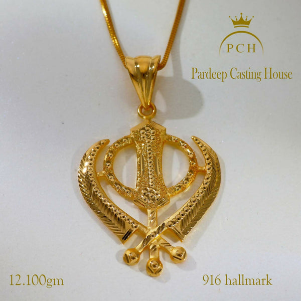 Textured Khanda Sikh Gold Pendant – HM Sarafa Bazar India Pvt Ltd