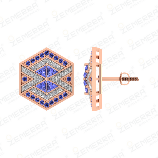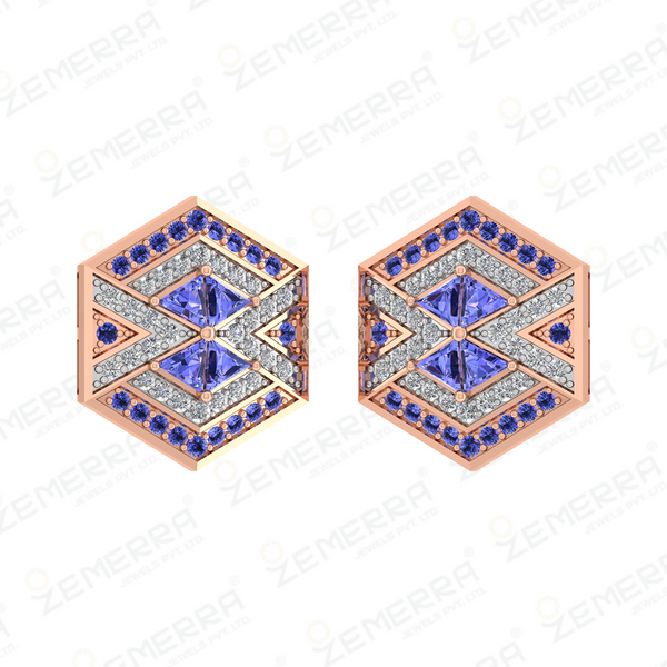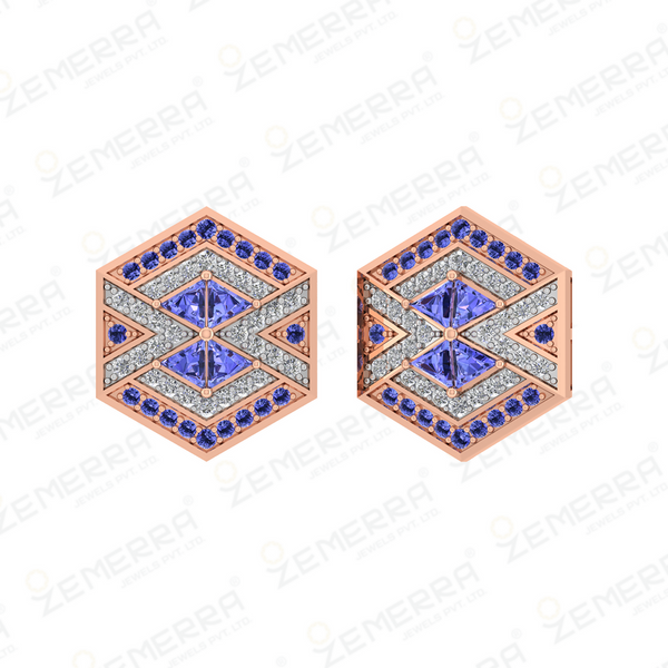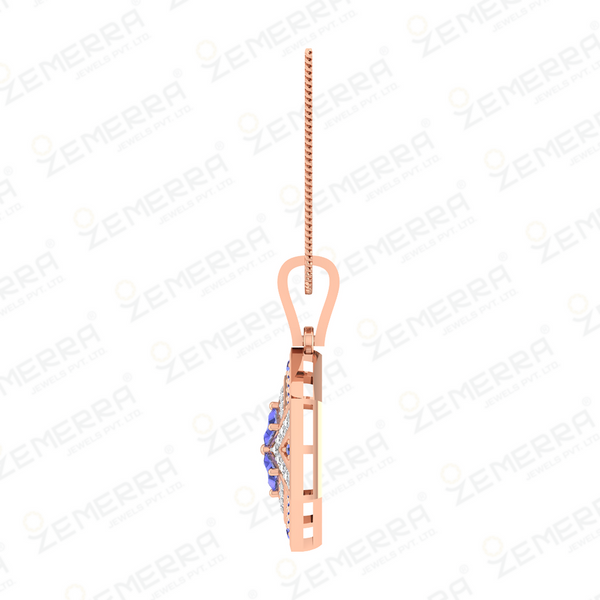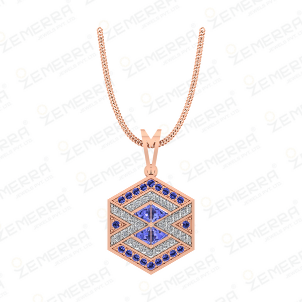 14K Gold Diamond Hexagon Shape Pendant With Tanzanite stone – HM Sarafa Bazar India Pvt Ltd