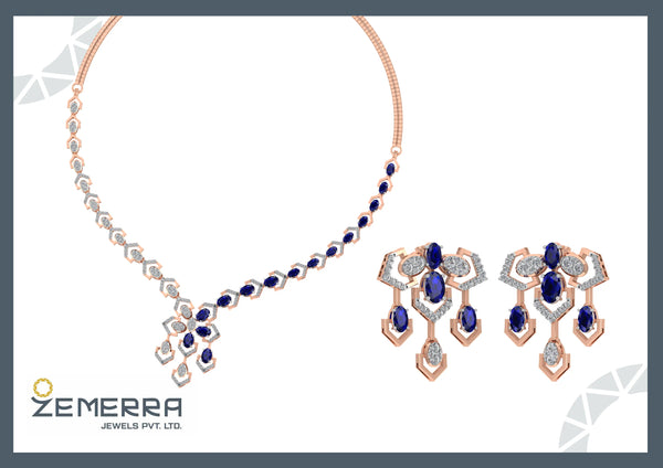 14K gold diamond necklace set with blue sapphire stone, crafted by a trusted jewelry manufacturer India offering premium finish and luxury appeal
