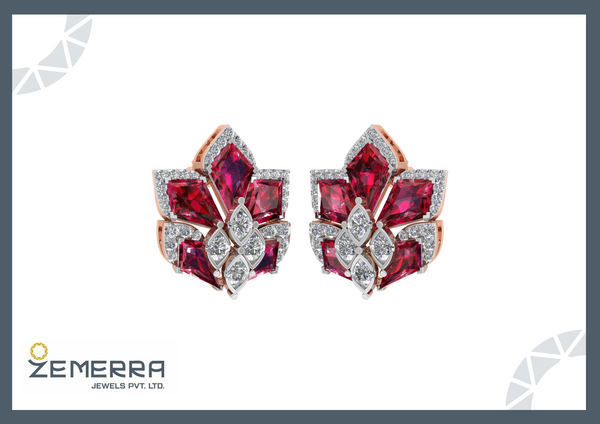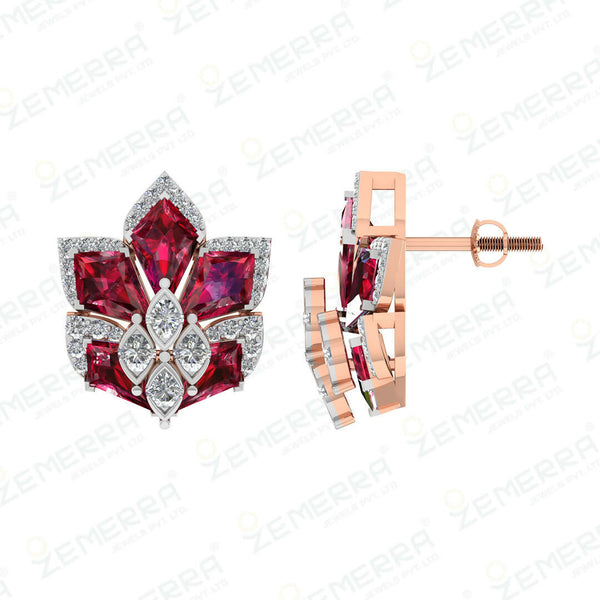 14K Gold Diamond Stud Earring With Gemstone – HM Sarafa Bazar India Pvt Ltd