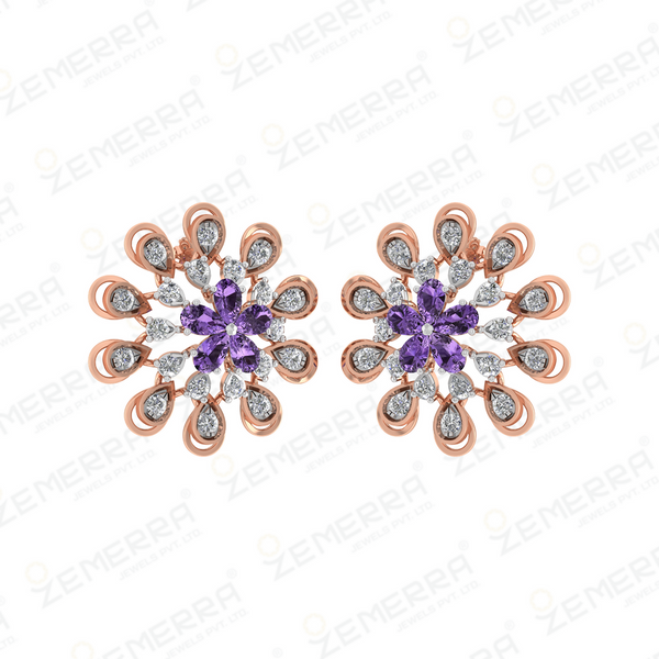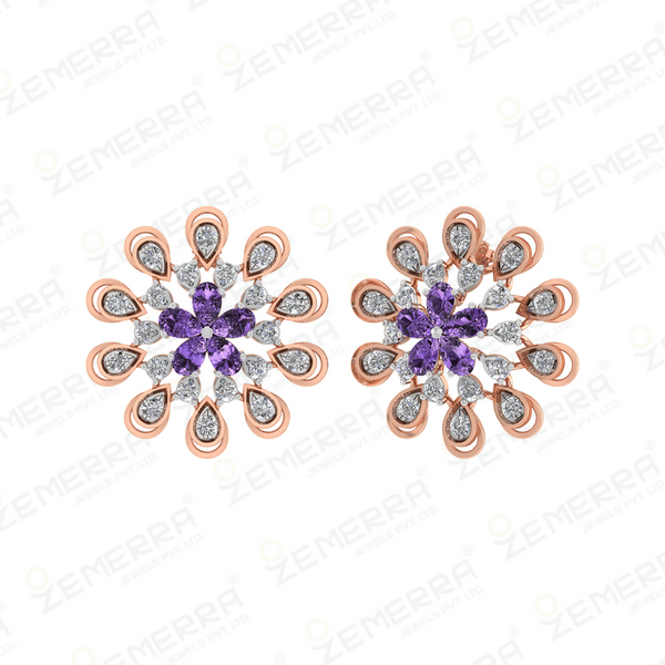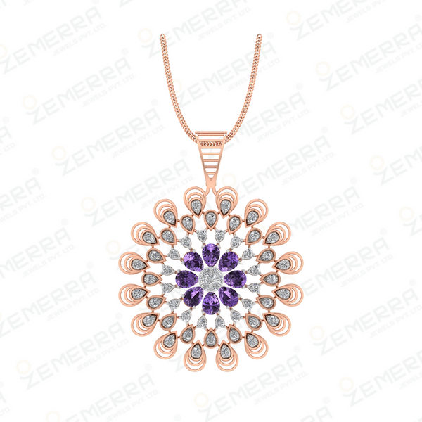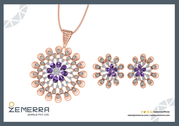 14k Rose Gold Diamond Floral Design Pendant Set – HM Sarafa Bazar India Pvt Ltd