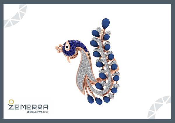 14K Rose Gold Peacock Ring with Diamonds & Blue Stones – HM Sarafa Bazar India Pvt Ltd
