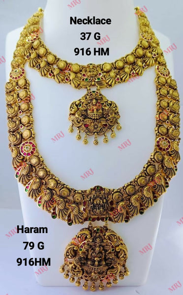22kt Antique Temple Necklace & Haram – HM Sarafa Bazar India Pvt Ltd