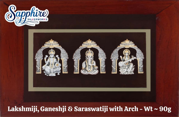 925 silver Lakshmiji, Ganeshji & Saraswati with Arch Idol With Frame – HM Sarafa Bazar India Pvt Ltd