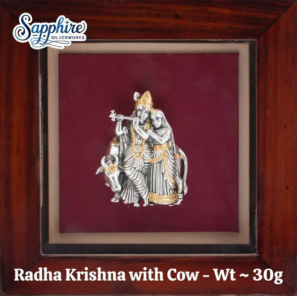 925 Silver Radha Krishna With Cow Idol With Frame – HM Sarafa Bazar India Pvt Ltd