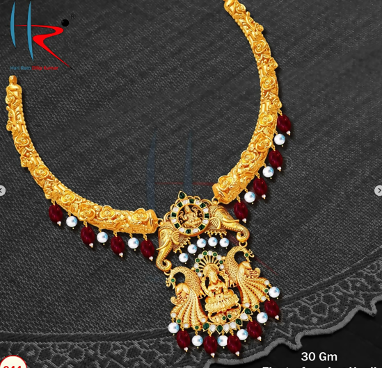 The piece weighs approximately 30 grams, making it a substantial yet wearable neck ornament. Heavier than typical costume pieces but lighter than equivalent solid-gold haslis of the same size due to its hollow construction.