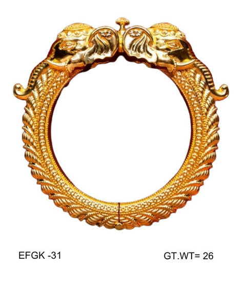 This elegant electroforming kada is crafted using advanced electroforming technology, giving it a rich, solid look while remaining lightweight and comfortable to wear. With precise detailing and a smooth, polished finish, it offers durability and long-lasting shine. Weighing approximately 26 grams and available in size 31, this kada is perfect for everyday wear as well as festive and special occasions. Its timeless design complements both traditional and modern styles.