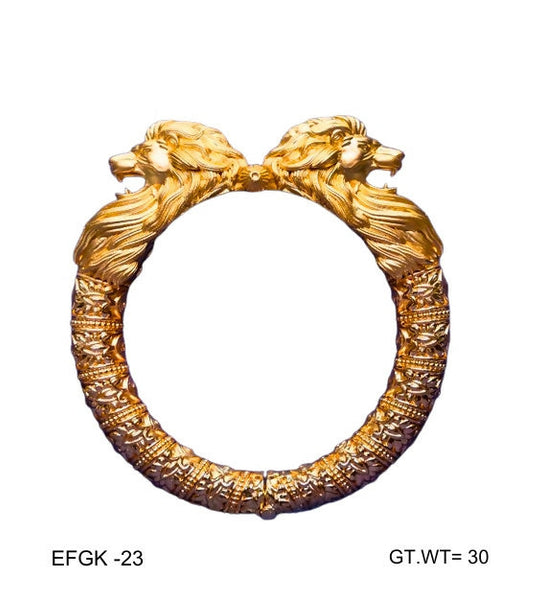 This stylish electroforming kada is expertly crafted using advanced electroforming technology, giving it a bold and solid appearance while remaining lightweight and comfortable to wear. With a refined finish and durable structure, it offers long-lasting shine and elegance. The kada weighs approximately 30 grams and comes in size 23, making it suitable for both everyday wear and special occasions. Its versatile design pairs beautifully with traditional and modern attire.