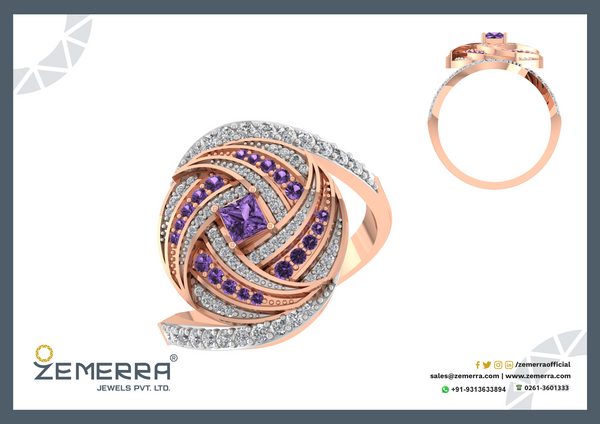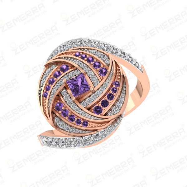 New Arrival 14K Gold Diamond Amethyst Stone Ring For Women – HM Sarafa Bazar India Pvt Ltd